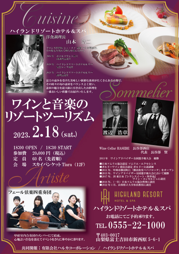 2023.2.18(土) 16年間したためてきた ワイン・音楽・料理のペアリングイベントを ホテルハ […]